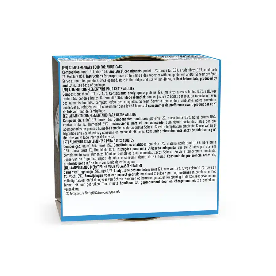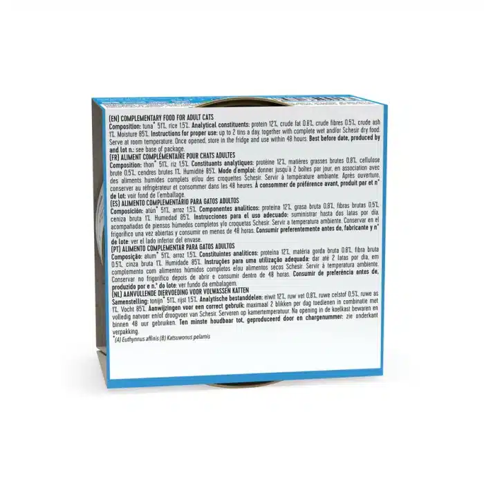 המתכון מבוסס על פילה אמיתי של טונה טעימה. הוא מגיע בג’לי כדי לספק את טעמם של חתולים שאוהבים את טעמי הים בשילוב עם עקביות מוצקה יותר בקערה.